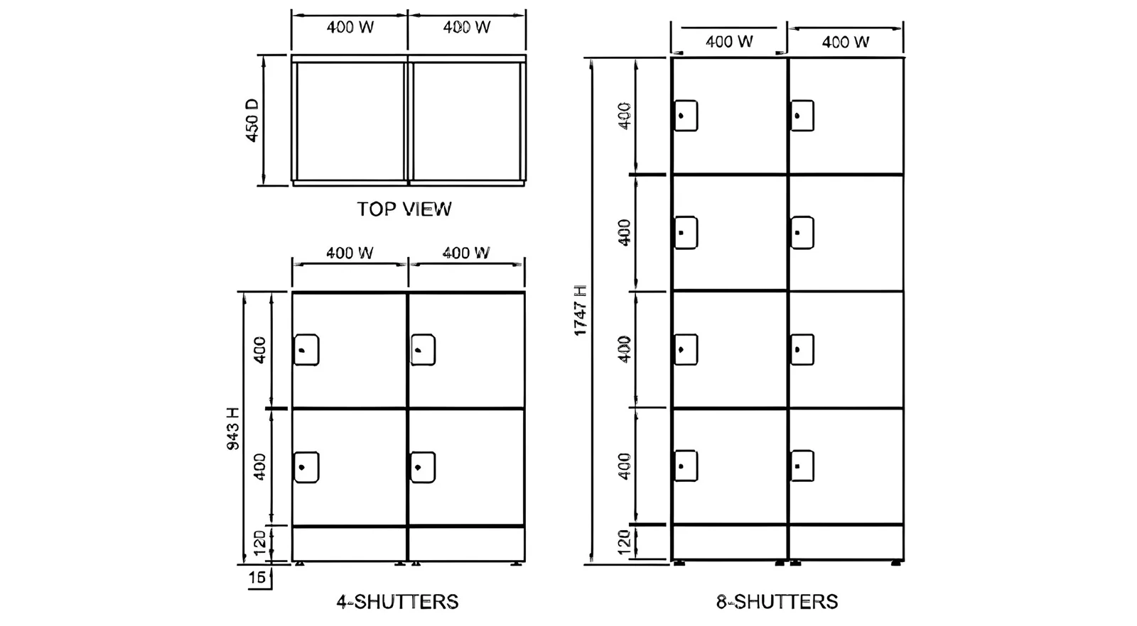 Dimensions for 8-shutter unit: