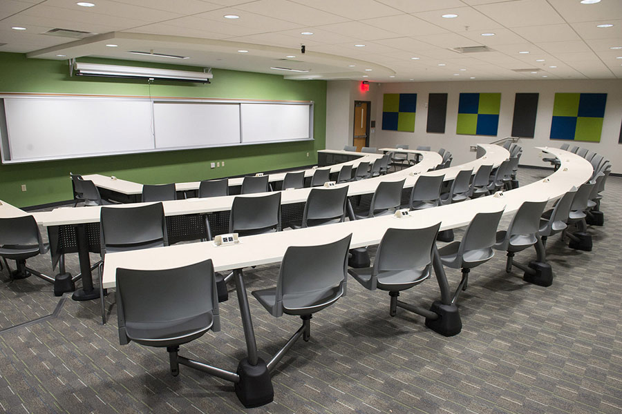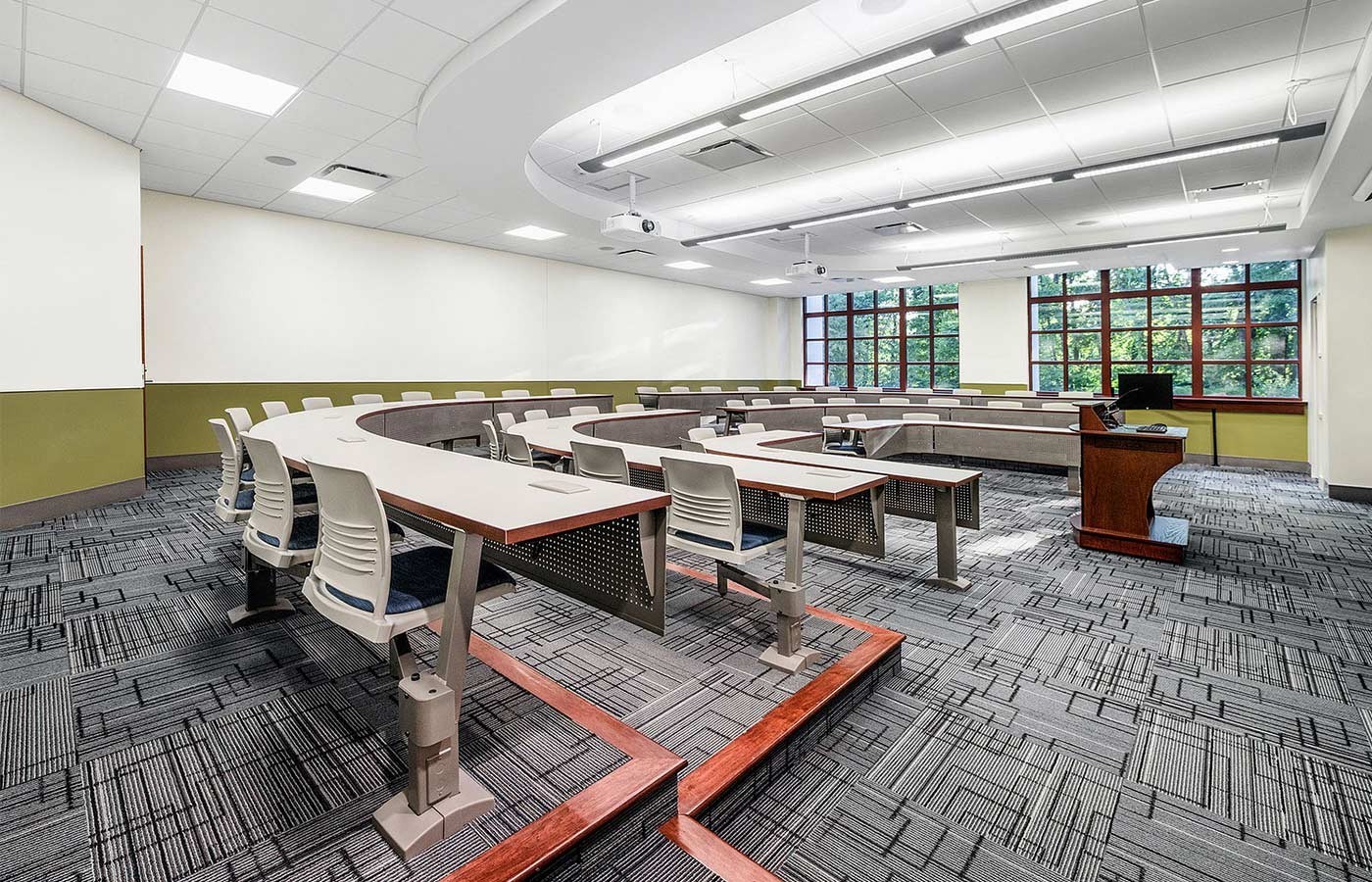 Adaptable to various teaching styles, University seating supports a wide range of space requirements while enhancing student engagement. The floor-mounted swivel seats and large, continuous worksurfaces encourage movement and collaboration. Power module options provide accessible charging to eliminate distractions, creating a more efficient and productive learning space.