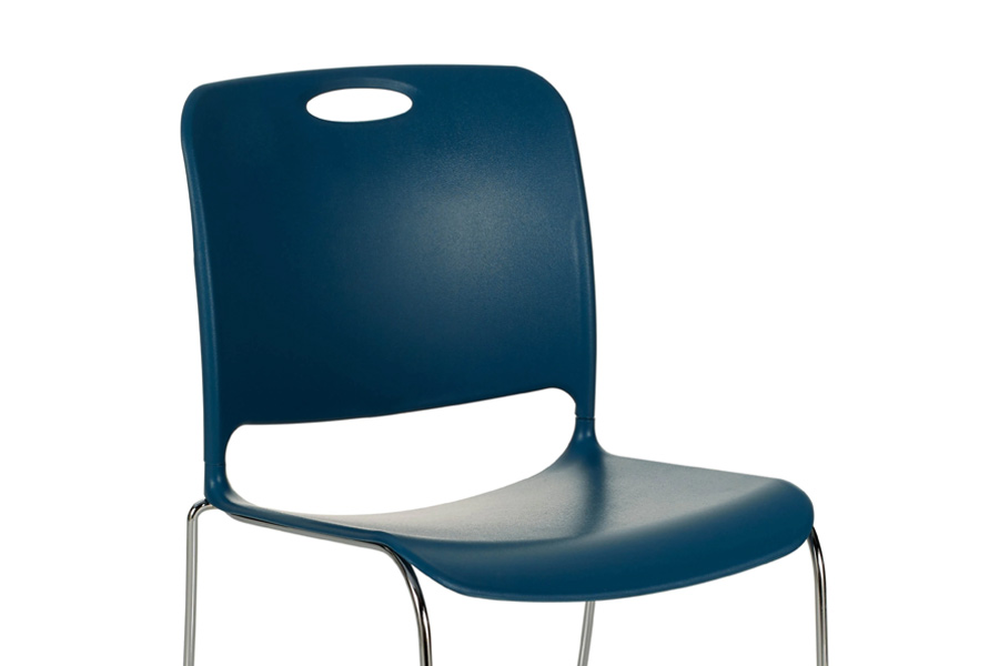 An integrated handle in the seat back allows for easy lifting, moving, and stacking.