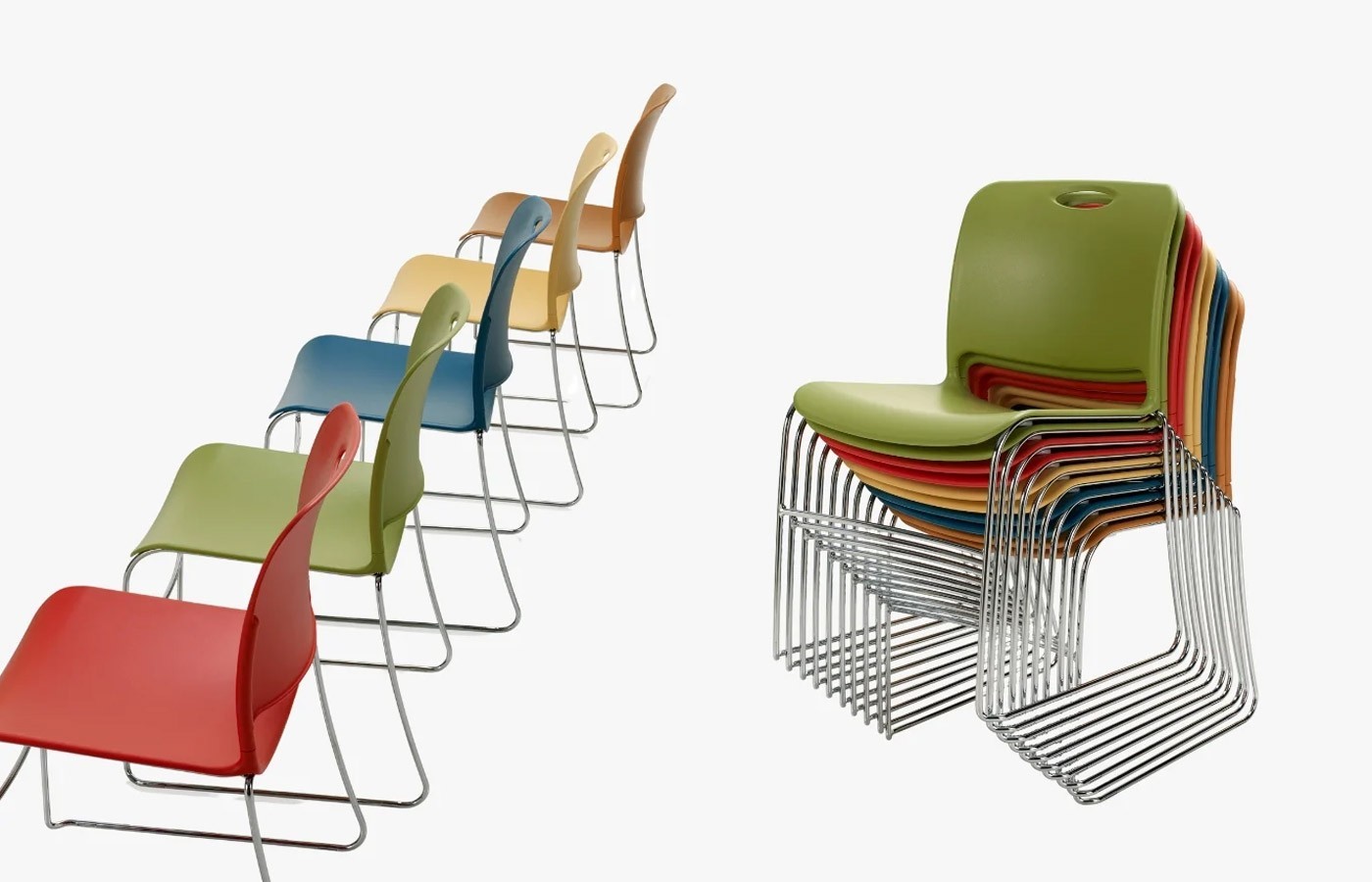Maestro chairs are perfect for high-density, movable seating needs. Easily set up, rearrange, stack, and store Maestro chairs for any application, from small break rooms to large lecture halls or convention centers.