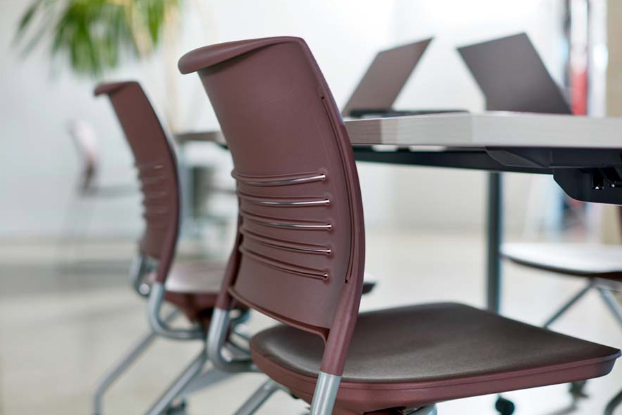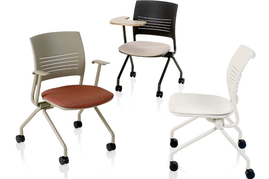 To accommodate the needs of any space, Strive nesting chairs are available with T-arms or tablet arms. Standard or oversize tablet arms provide a functional worksurface for personal items.