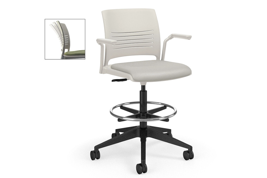 To accommodate the needs of any space, Strive task stools are available with cantilever arms to support users.