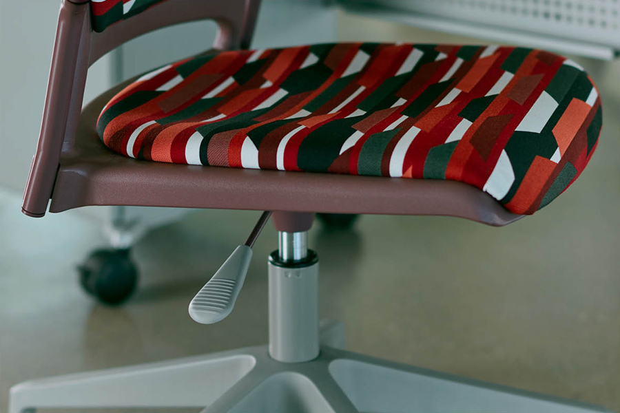 Seat height pneumatically adjusts with a single lever from 22–32.5".