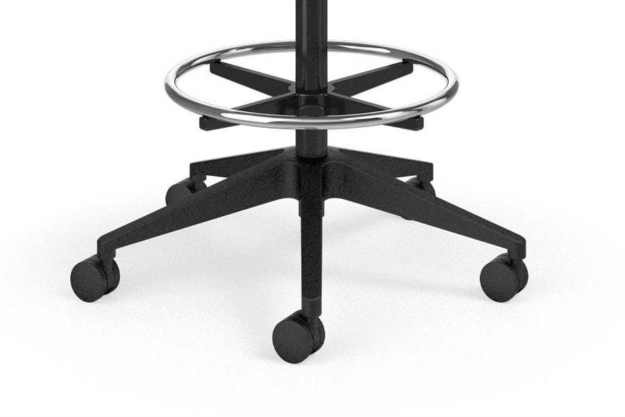 The five-star base easily maneuvers around objects and table legs. To suit any flooring, the base is available with hard floor or carpet casters. The chrome-plated foot ring is height adjustable to adapt any user.